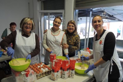 'La Fica', Sonia, Noelia y Charo en la preparación de los 'papaviejos'.
