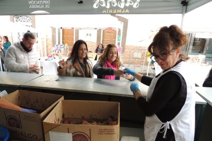 Aquí están las mejores naranjas del mundo. Gádor vive con pasión el 'Día de la Naranja' con cientos de visitantes. Desde las 6 de la mañana la actividad ya era frenética junto al Ayuntamiento, y es que se estaban preparando los 'papaviejos', buñuelos fritos típicos que incorporan el sabor cítrico de sus naranjas. Además, se fueron incorporando puestos de panaderías, de licores, y un sinfín de productos para que el municipio brillara más que nunca. La alcaldesa, Lourdes Ramos, fue repartiendo "las pulseras de la suerte" a los comerciantes. Tampoco faltó el diputado de Promoción de la Provincia, Carlos Sánchez.