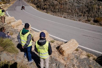 Participantes rodando sobre el asfalto del Alto de Velefique.