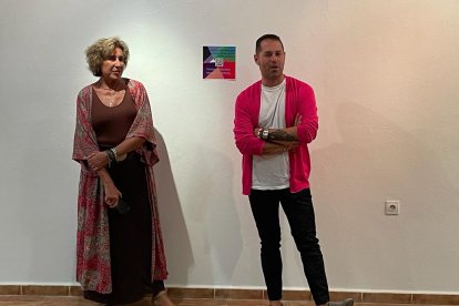 Los artistas Encarna Morales y Jesús Visiedo durante la inauguración de la exposición en el Hotel Naturaleza Rodalquilar.