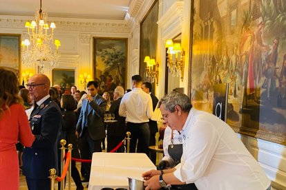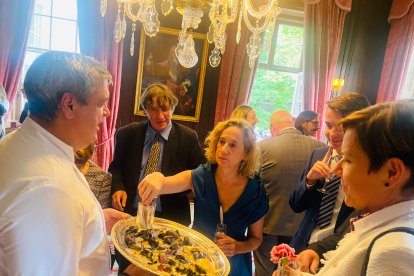 El chef ejidense del restaurante La Costa, José Álvarez, ha deleitado este miércoles con su cocina a los más de 500 invitados de la Embajada de España en Londres con motivo del Día de la Hispanidad, una de las fechas más importantes en el calendario de la casa de los españoles en la capital británica. Entre los asistentes al evento, José Álvarez ha tenido la oportunidad de ofrecer sus aperitivos a otros embajadores de distintos países en Londres, además de numerosos españoles residentes en la capital y otros representantes institucionales, a lo largo del cóctel que se ha desarrollado entre los principales salones de la casa de España y los jardines.