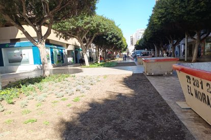 Todo preparado para recortar los parterres del Paseo de Almería