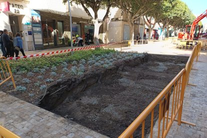 Labores de extracción de tierra para recortar los parterres del Paseo de Almería