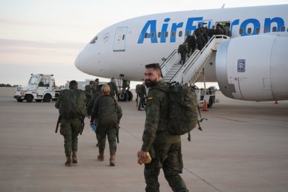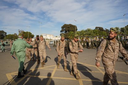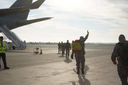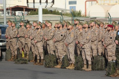 Dos grupos legionarios partieron a las misiones de la OTAN en Irak y de la ONU en Líbano este viernes en el Aeropuerto de Almería. Familiares y compañeros despidieron a los militares en un sencillo acto presidido por el coronel José de Meer.