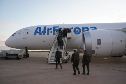 Familiares y compañeros despiden a los miembros de las dos rotaciones en el aeropuerto
