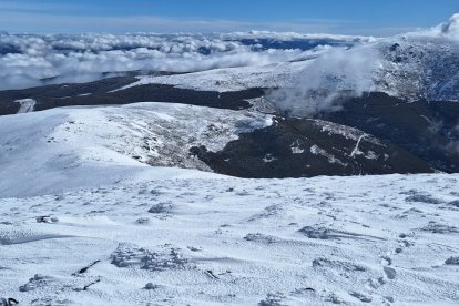Vistas del Chullo, el pico más alto de Almería, tras la nevada.