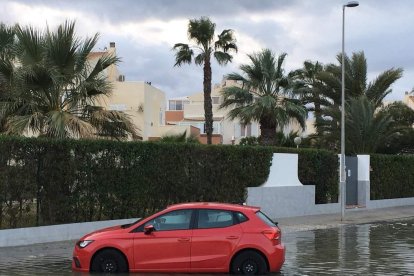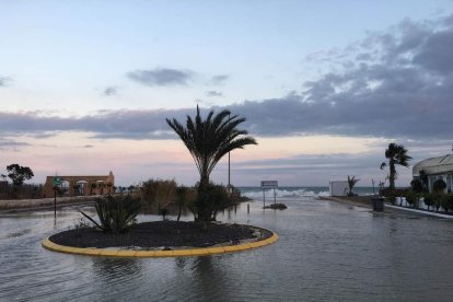 El temporal costero ha provocado de nuevo la entrada del agua en calles y zona urbana de 'Natsun', una parte de Vera Playa afectada por las anegaciones hasta que se resuelva de manera definitiva el deterioro de su primera línea de playa.
