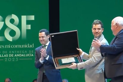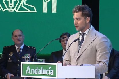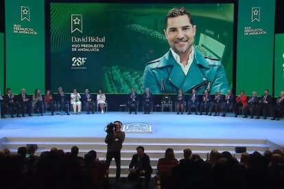 En el acto, presido por el presidente de la Junta, Juanma Moreno, y por el presidente del Parlamento hace entrega de los títulos de hijos predilectos de Andalucía al cantante almeriense David Bisbal y, a título póstumo, a la artista jerezana Lola Flores.