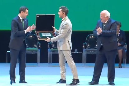Abrazo entre David Bisbal y Juanma Moreno.