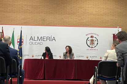 El parque de bomberos de Almería ha celebrado este miércoles los actos instituciones en honor a San Juan de Dios, patrón del cuerpo. Durante el evento se han entregado reconocimientos a los nuevos miembros y también a bomberos con destacados servicios profesionales.