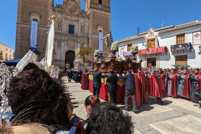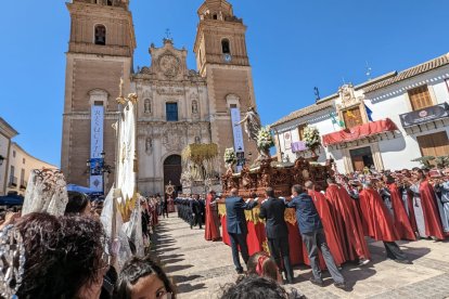 Encuentro entre madre e hijo el domingo de Resurrección en Vélez-Rubio.