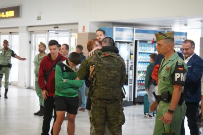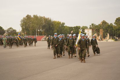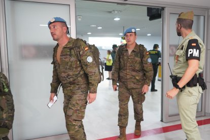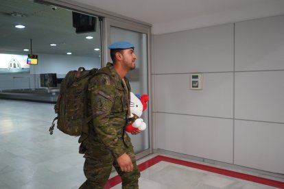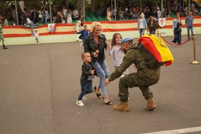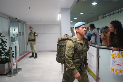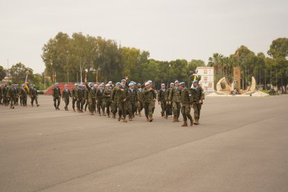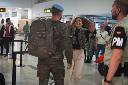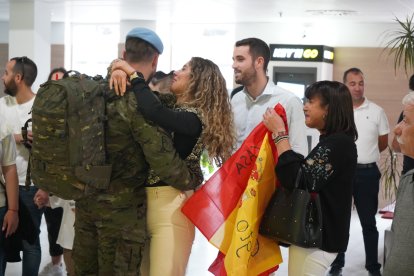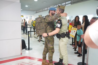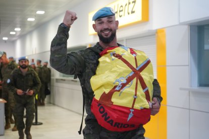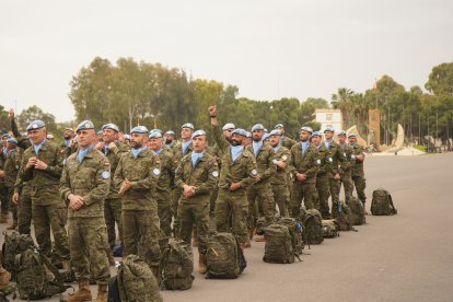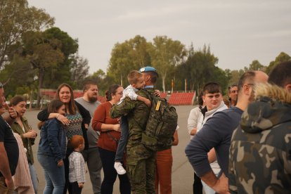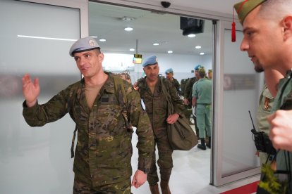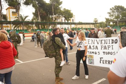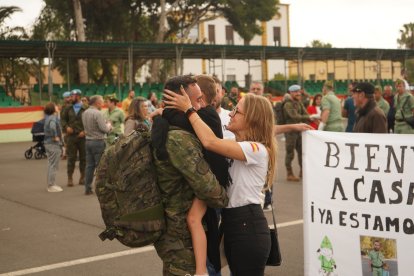 Un grupo de 250 legionarios con el general Marín al frente aterrizó este sábado 27 de mayo en el Aeropuerto de Almería para completar definitivamente el regreso del contingente tras seis meses en Líbano. Los cascos azules se reencontraron con sus familias tras un sencillo acto en el patio de armas de Viator.