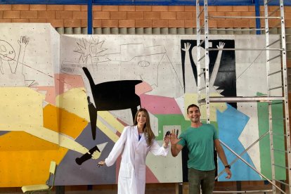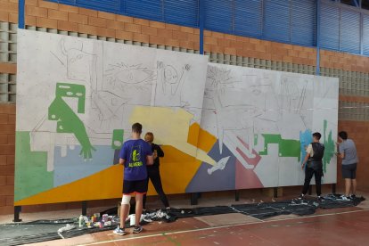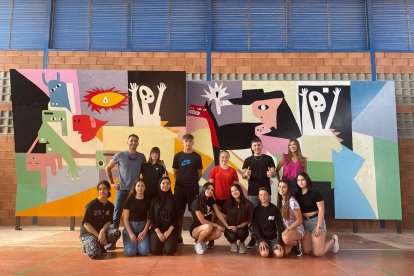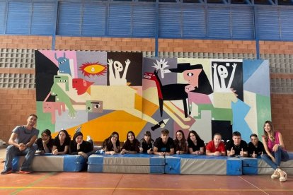 Una veintena de estudiantes de 4º de ESO han participado en la elaboración de un mural inspirado en una de las obras más populares de Pablo Picasso, en el famoso e imponente 'Guernica'. Lo han pintado a su manera, dándole un toque más moderno, sobre la estructura de un nuevo rocódromo al que le venía perfecto el estilo cubista, surrealista y expresionista de este histórico cuadro que está expuesto en el Reina Sofía.