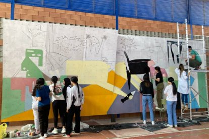 Profesores y alumnos del IES El Alquián pintan un mural inspirado en el ‘Guernica’ de Picasso