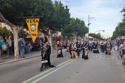 Este viernes 9 de junio se celebró el Gran desfile de Moros y Cristianos en Vera, un gran evento que no se pudieron perder los cientos de vecinos y visitantes que se situaron en diferentes puntos del recorrido para disfrutar de las cabilas y cuarteles que desfilaron con sus mejores galas donde noo faltaron las bailarinas de fuego, de danza del vientre o la lucha de espadas. Hoy será el día grande dedicado a la Patrona del municipio, la Virgen de las Angustias que procesionará después de la celebración de la eucaristía en su honor.