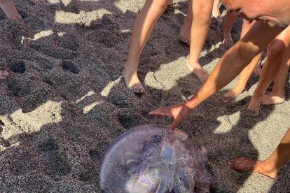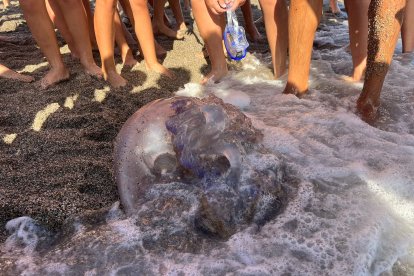 Una medusa de grandes dimensiones ha sorprendido esta tarde a los bañistas.