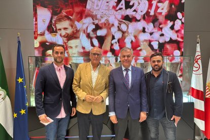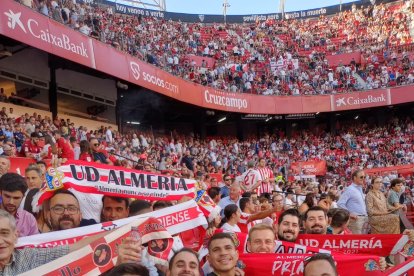 Galerías Rojiblancos en Sevilla Muchos aficionados del Almería han viajado en sus vehículos particulares Facebook Twitter Whatsapp Whatsapp Copiar enlace Publicado por Rafa Góngora Creado: 26.09.2023 | 14:43 Actualizado: 26.09.2023 | 14:43 La Voz Paco Sánchez, de la Peña Los Molinos y Luis Sánchez, de la Peña La Fuensanta.