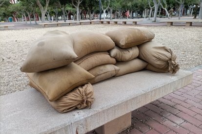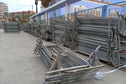 Montaje del escenario en el Parque de Las Almadrabillas este jueves.