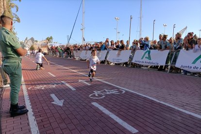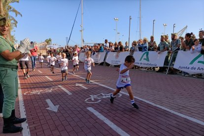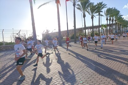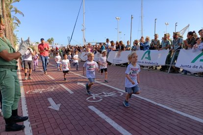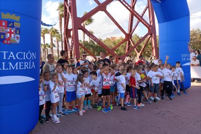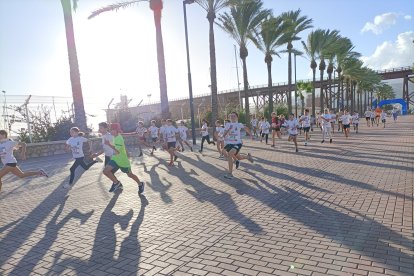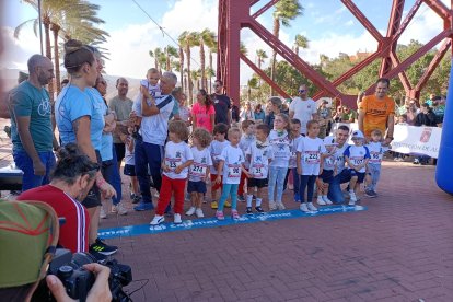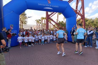 Como aperitivo de esta multitudinaria cita, en la que se esperan más de 6.700 participantes, la capital almeriense ha acogido este viernes 'La Mini Desértica'. Medio millar de niños y niñas han corrido en su respectiva categoría por el Paseo Marítimo Carmen de Burgos, en los alrededores del Club de Mar, donde también está ubicada la Feria del Corredor. Esta carrera infantil, que tiene como objetivo promocionar los hábitos saludables entre los más pequeños, ha contado con una inscripción simbólica de 3 euros, destinándose la recaudación íntegramente a la Asociación Atiempo, que desde 1995 da apoyo al tratamiento de adicciones.