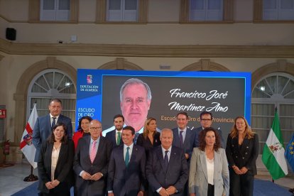 Francisco José Martínez Amo, presidente del Colegio Oficial de Médicos de Almería, ha recibido la tarde de este jueves el Escudo de Oro de la Provincia, que le ha sido impuesto por el presidente de la Diputación, Javier Aureliano García. Martínez Amo, que se ha mostrado muy emocionado, ha agradecido este reconocimiento acompañado de compañeros de profesión y del colegio, familiares, amigos y autoridades civiles y militares.