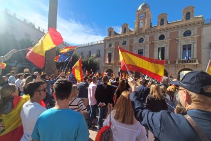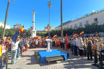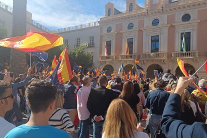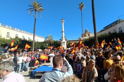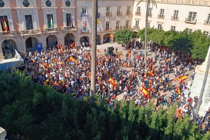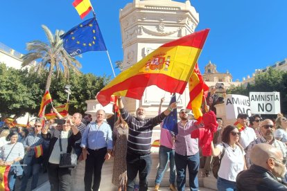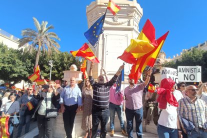 Cientos de personas se movilizan en estos momentos en la Plaza Vieja de la capital almeriense para protestar contra la amnistía recogida en el pacto de Psoe y Junts para la investidura de Pedro Sánchez.