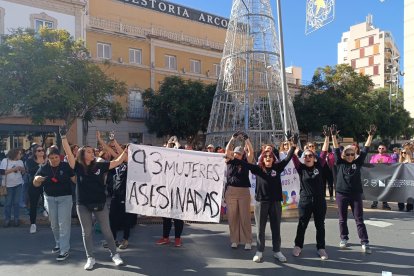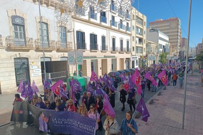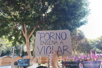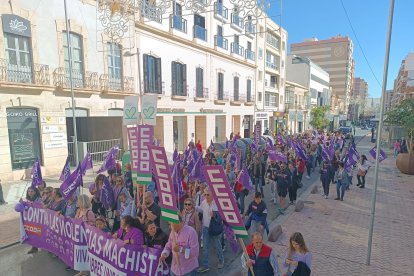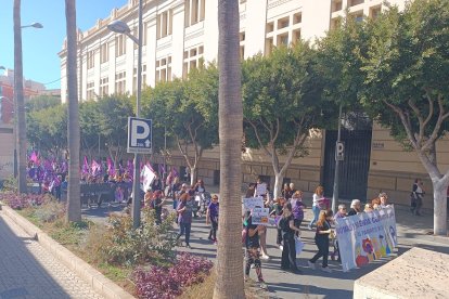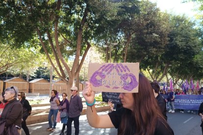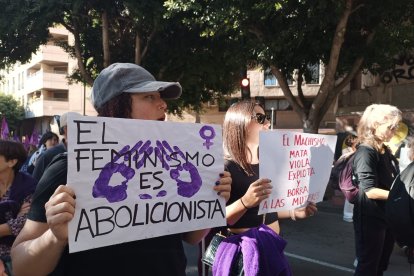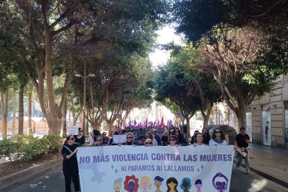 La Plataforma de Acción Feminista de Almería ha tomado las calles de la capital almeriense en una manifestación que ha partido a las 12:00 horas de la Plaza de la Velas y ha continuado por la Rambla de Almería, Obispo Orberá y con final en la Puerta Purchena.