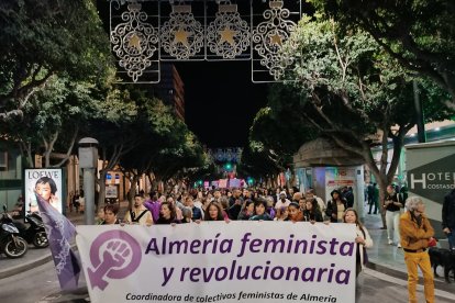 La segunda manifestación del Día Internacional de la Eliminación de la Violencia Contra la Mujer ha partido a las 19:30 horas desde la Plaza de las Velas organizada por la Coordinadora de Colectivos Feministas de Almería.