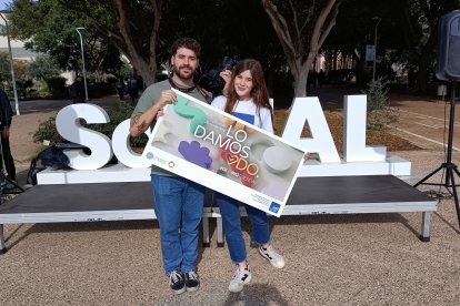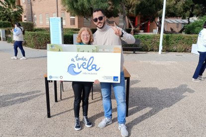Instante en el que se levantó la lona este martes en el campus de la UAL por el Giving Tuesday.