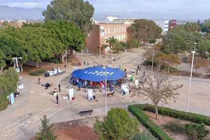 El campus de la Universidad de Almería ha sido escenario este martes de la celebración del 'Giving Tuesday', una cita que nació como una alternativa a populares fechas como 'Black Friday' o 'Ciber Monday', aunque en este caso lo que se pone en valor es la solidaridad. Su objetivo es fomentar las donaciones a diferentes asociaciones y entidades sin ánimo de lucro. En la UAL estuvieron representadas A toda vela, Alcer, Ayudemos a un niño, Cruz Roja, FAAM, FRATER, Manos Unidas, Proyecto Alpha, El Saliente y Verdiblanca, cuyos voluntarios participaron en el simbólico levantamiento de una lona gigante de 'UAL UNE'.