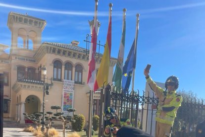 -Bomberos de Almería se manifiestan con un ataúd por las calles de la capital.