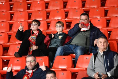 Magnífico aspecto de la grada de Tribuna con unos aficionados rojiblancos entregados.