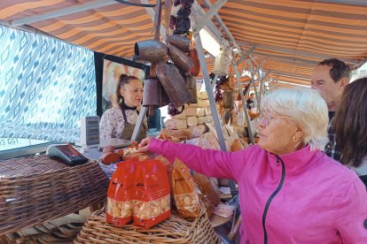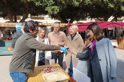 La concejala Lorena Nieto visitando uno de los stand de la Feria del Queso Artesano.
