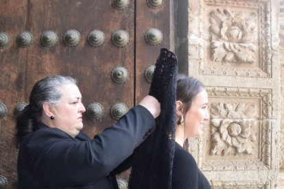 La Asociación de La Mantilla en la puerta de la Catedral.