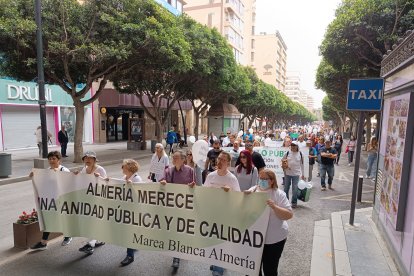La plataforma Marea Blanca salió a las calles de Almería para exigir una sanidad pública y de calidad.