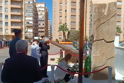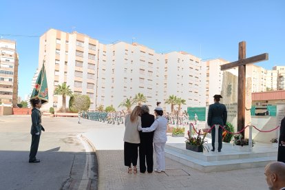 Entrega de ramo de flores de los familiares de Juanje López, el guardia civil que perdió la vida el pasado 19 de marzo en un accidente en Sevilla.