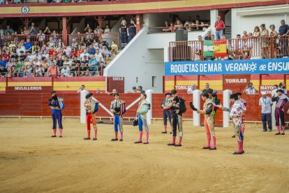 La primera corrida de toros de la Feria de Santa Ana de Roquetas de Mar reunió en una novillada a Alejandro González, Dennis Martín, Héctor Morales y Antonio Ortega, Simón Andreu y Alejandro Rubio y Pablo Sánchez.