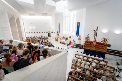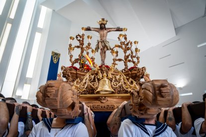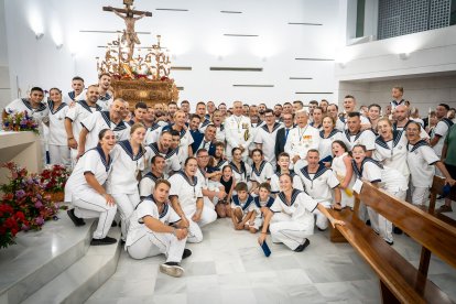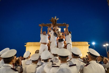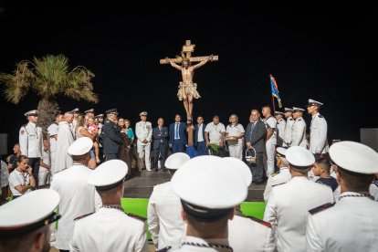 El Santísimo Cristo del Mar recorrió anoche en procesión las principales calles del Puerto de Roquetas de Mar bajo la atenta mirada de cientos de devotos y fieles que vivieron esta tradicional cita del calendario roquetero cofrade. Los costaleros-marineros portaron sobre sus hombres la imagen del venerado Cristo del Mar al son de los acordes y melodías de la Agrupación Musical Cristo del Perdón de Guadix. Una vez en la explanada del Faro y tras la levantá, el Cristo fue bajado del paso y llevado a hombros hasta la orilla de la playa para proceder al tradicional lavapiés para volver a su templo tras una procesión mutitudinaria.