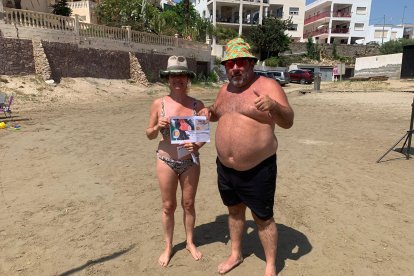 Los ganadores de la entrada para la Geoda de Pulpí y que ayer disfrutaban de la playa y la buena gastronomía Costa Tranquila.
