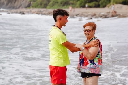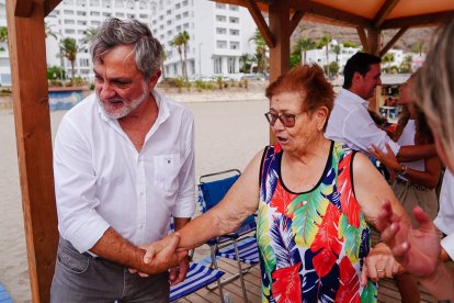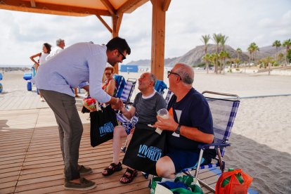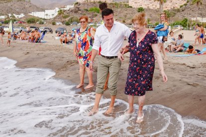 Isabel, Manuel y Purificación, han cumplido su deseo este jueves de ir a la playa en Mojácar
