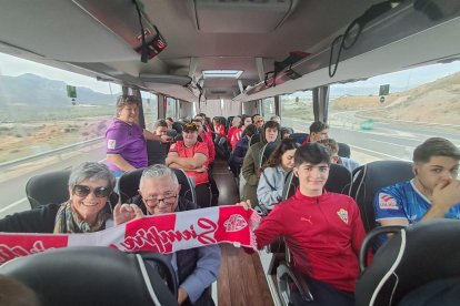 Una afición top con sentimiento rojiblanco en Cartagena para vivir en directo el partido correspondiente a la 16ª jornada del curso en el Campeonato Nacional de Liga en el fútbol de plata. Cuatro autocares más los aficionados en vehículos particulares formaron la caravana rojiblanca para estar con el equipo de Rubi.