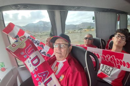 La Federación de Peñas de la UD Almería que preside Mónica Ruiz llenó dos autocares de 63 plazas cada uno, mientras que la Peña Orgullo Almeriense completó otros dos con un total de 110 aficionados entre peñistas o abonados rojiblancos.