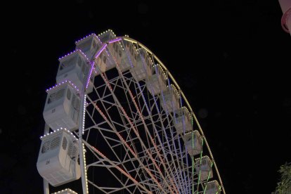 Un grupo de amigas subidas en una de las atracciones en el ferial