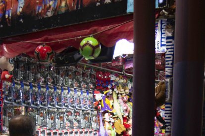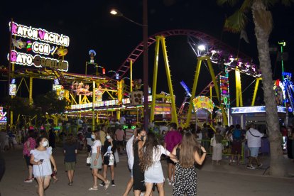 Naia, de 1 año y medio, fue a montarse en los ‘cacharricos’ con su madre, Nieves
