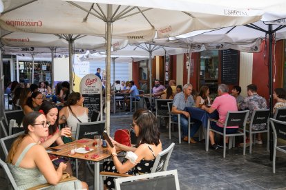 Bares y terrazas llenas en el centro de la ciudad