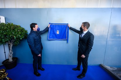 La placa que recordará en Puchena la celebración del Día de la Provincia, aún cubierta.