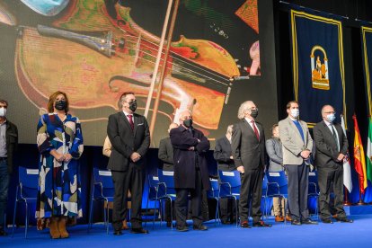 Los homenajeados en pie al inicio del acto mientras se escucha la música de Mozart a cargo del quinteto de cuerda Diesis.