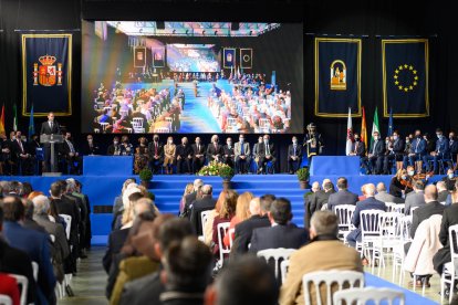 En pie con el Himno de la Alegría abriendo el acto.