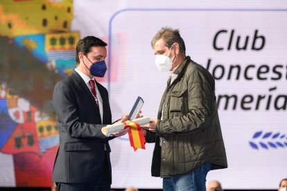 Miguel Carlos Palanca, presidente de Unión Rugby Almería, interviene tras recibir la distinción al club deportivo.
