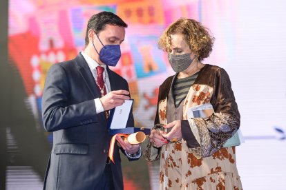 Medalla de Oro de Lo Social 2020 al Teléfono de la Esperanza. La recibe su presidenta, María Isabel Orland.