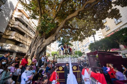 La primera cofradía que pasará por la nueva carrera oficial ya está en la calle: a las 10.30 horas de la mañana, las puertas de la iglesia del Espíritu Santo se abrían para que la Borriquita cumpliera su cita con la Almería cofrade. Como es tradición, el tiempo respetó y un sol de justicia no se ha perdido su cita con los almerienses más madrugadores.